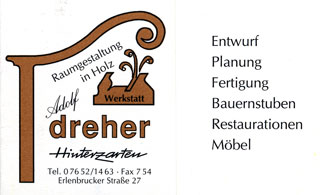 Die Schreinerarbeiten in der Stube sowie im gesamten Haus Mühle und Lickert wurden durchgeführt von: